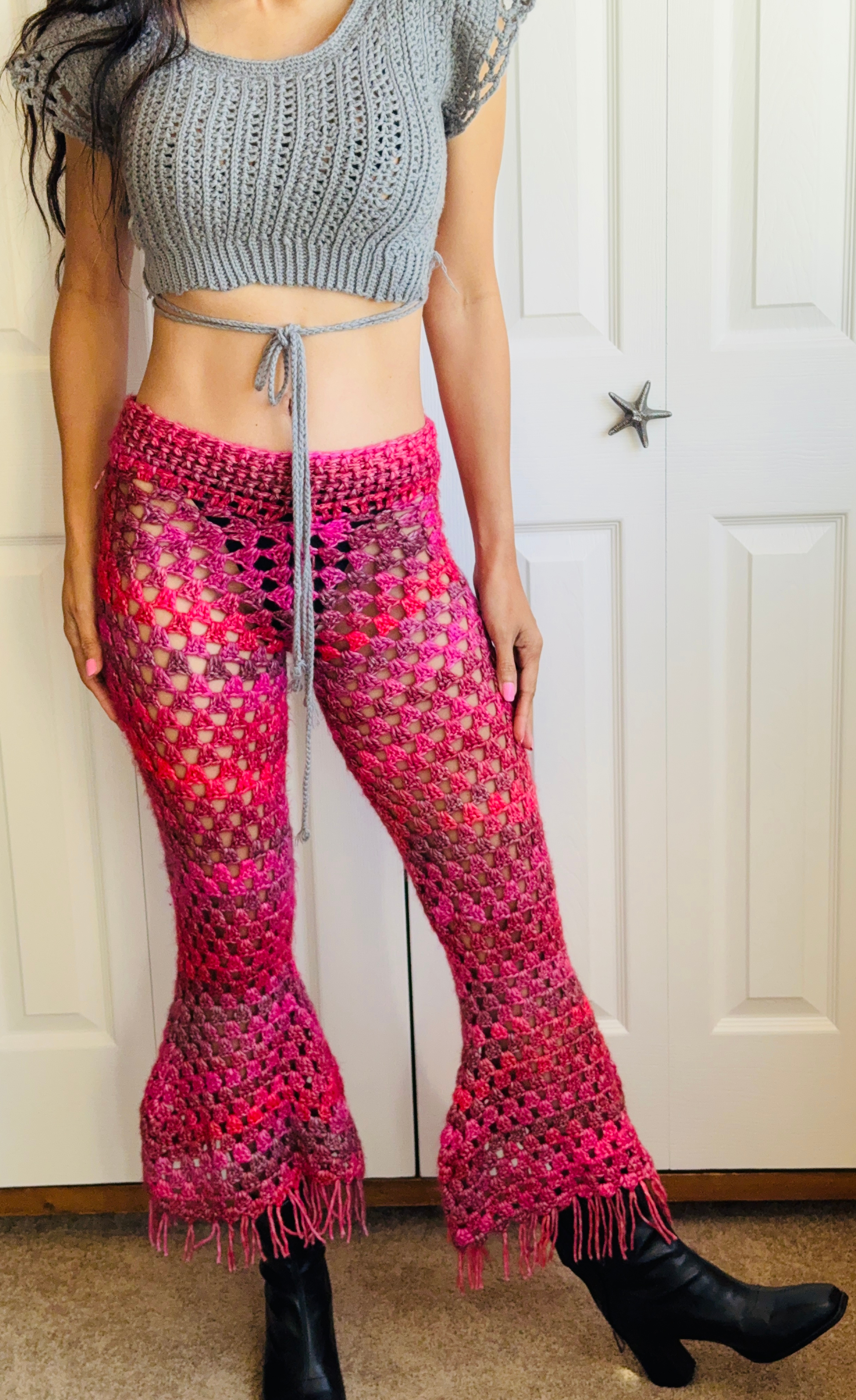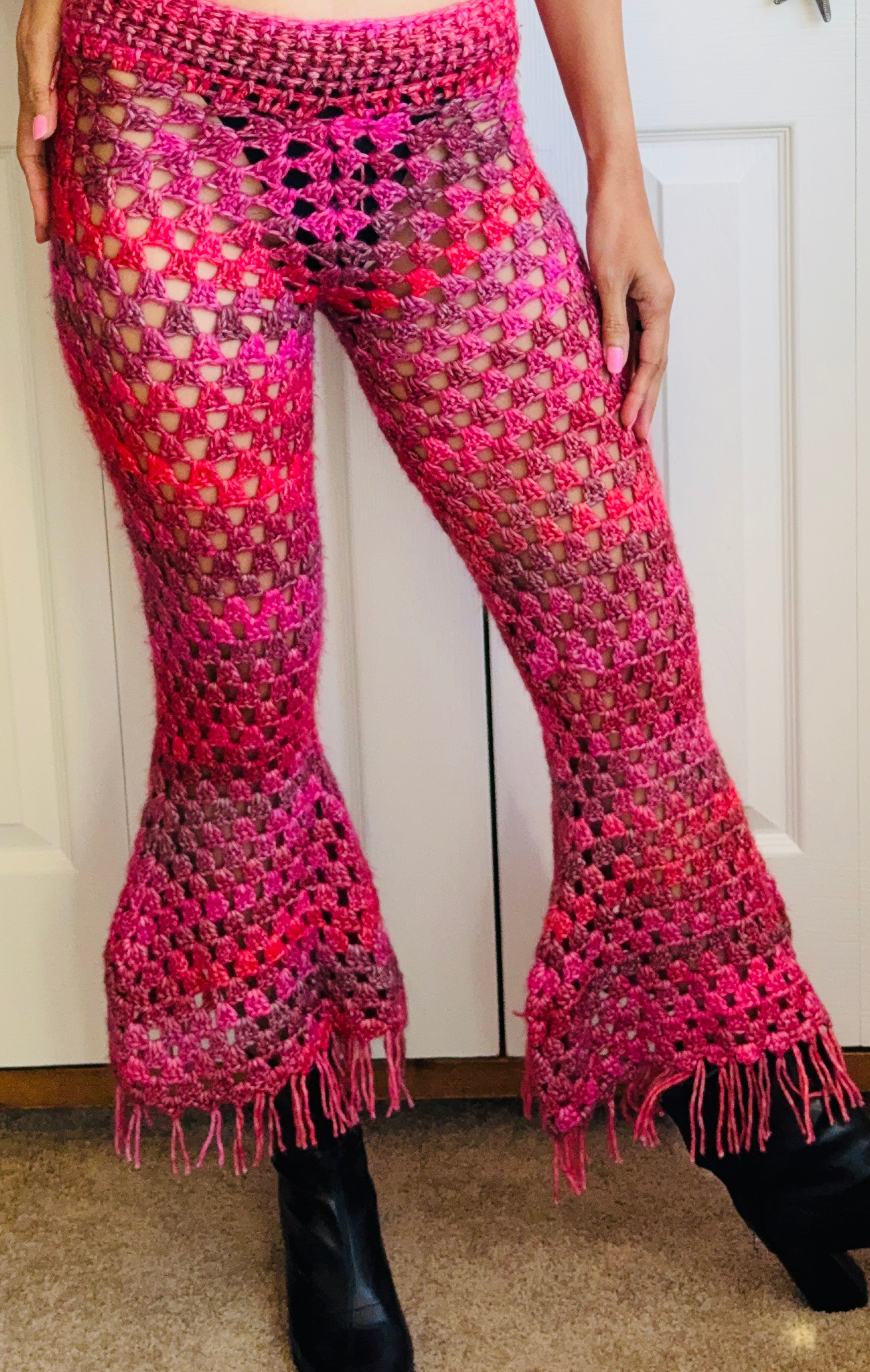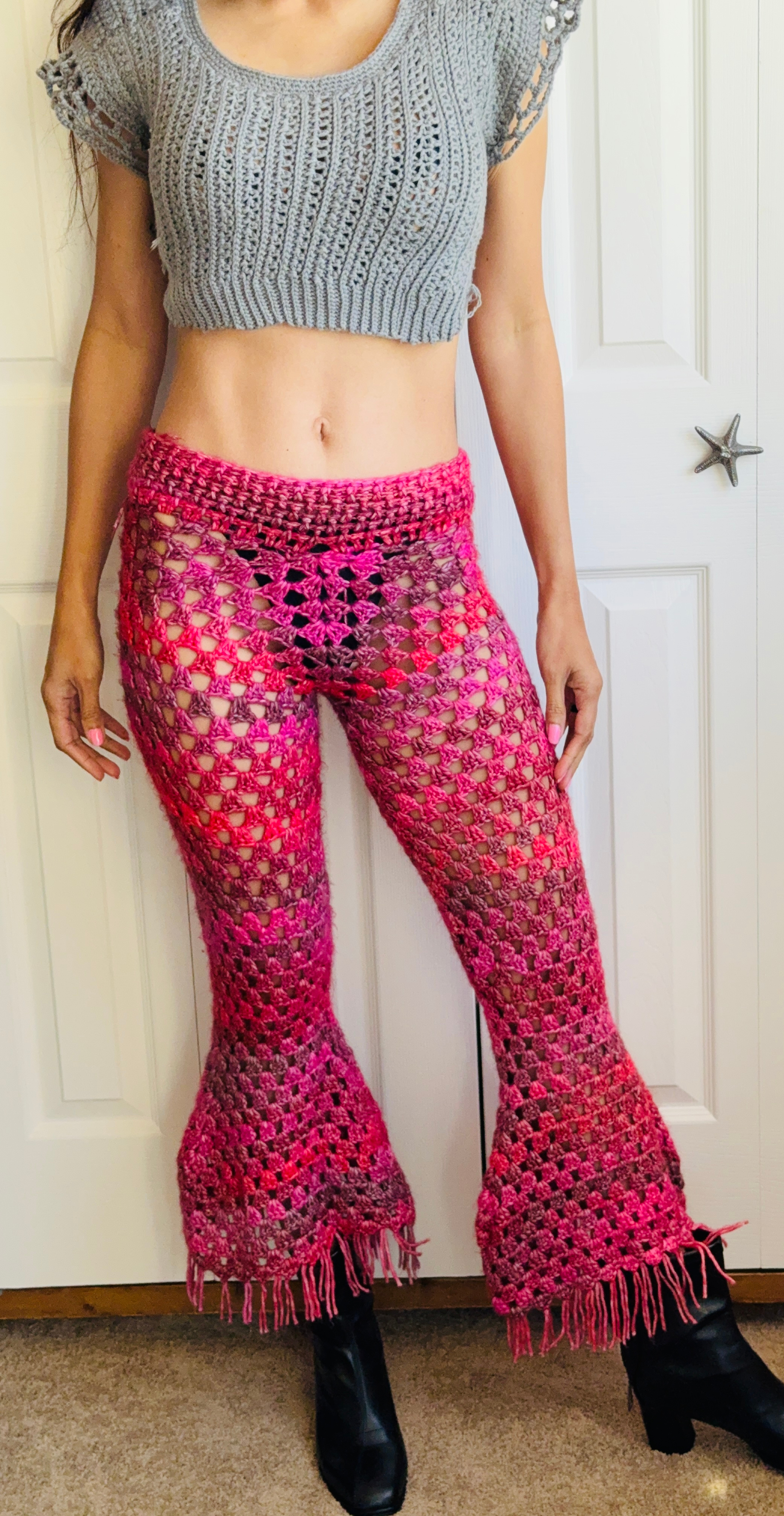 Pink Crochet by Riza designed the 1960's Riza Bell Bottom Pants pattern. Find more of their patterns on their Ribblr shop page.