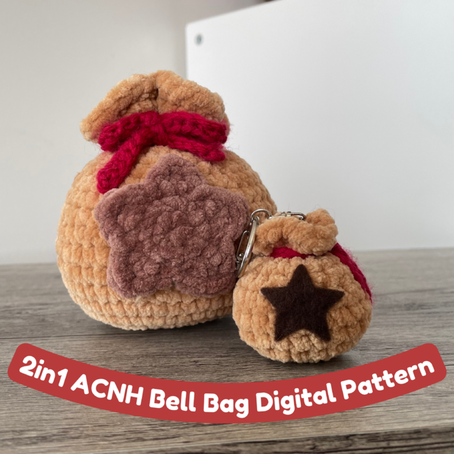 Get both my ACNH bell bag plush, along with my bell bag keychain patterns!