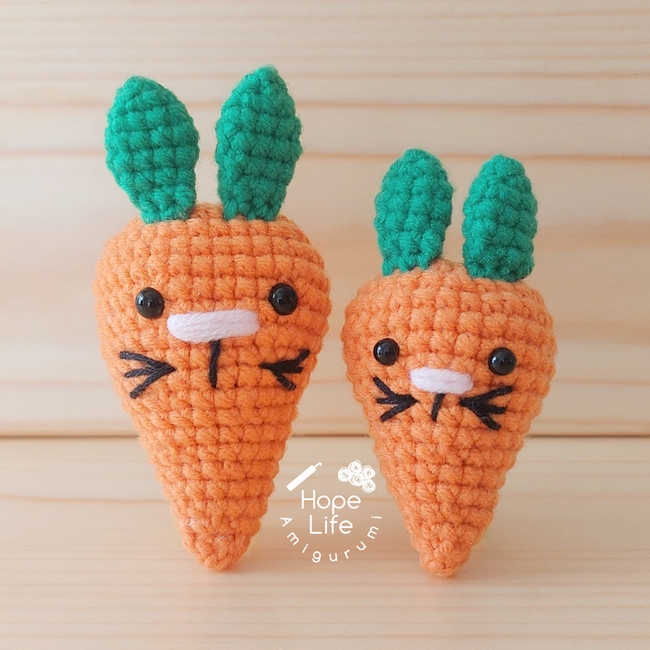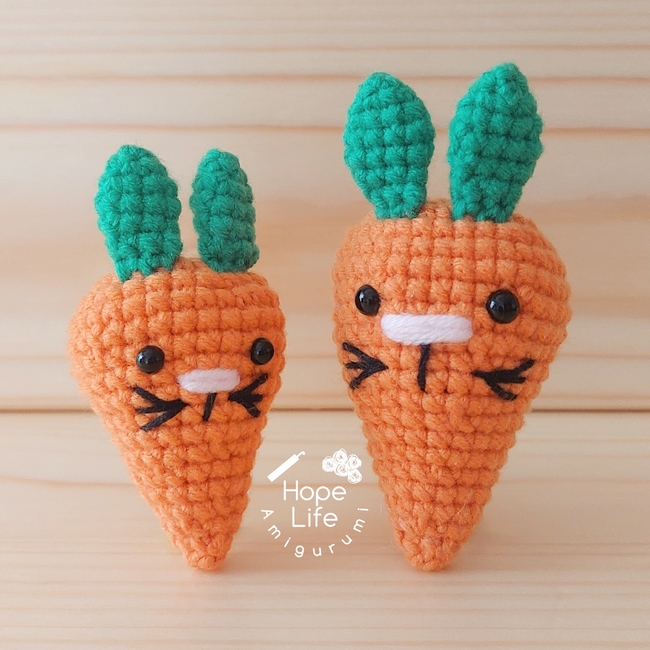 This is a beginner level pattern, including instructions for both Small and BIG Carrot Rabbits and they are perfect size for key chains. There are photos guiding you through the pattern and there are different skills you could try out in this pattern. Fara & Sara are made with milk cotton yarn and 2.5mm hook. They are 8 cm and 9 cm tall, but this may vary depend on the materials and stitches tightness.