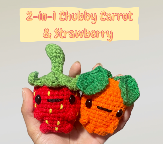 The 2 - In - 1 Chubby Carrot & Strawberry pattern makes a Amigurumi. It is a Beginner Crochet pattern.