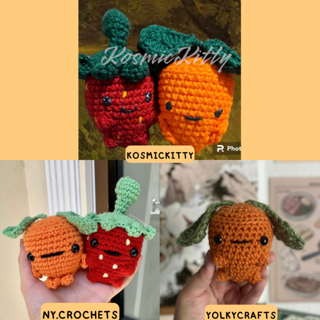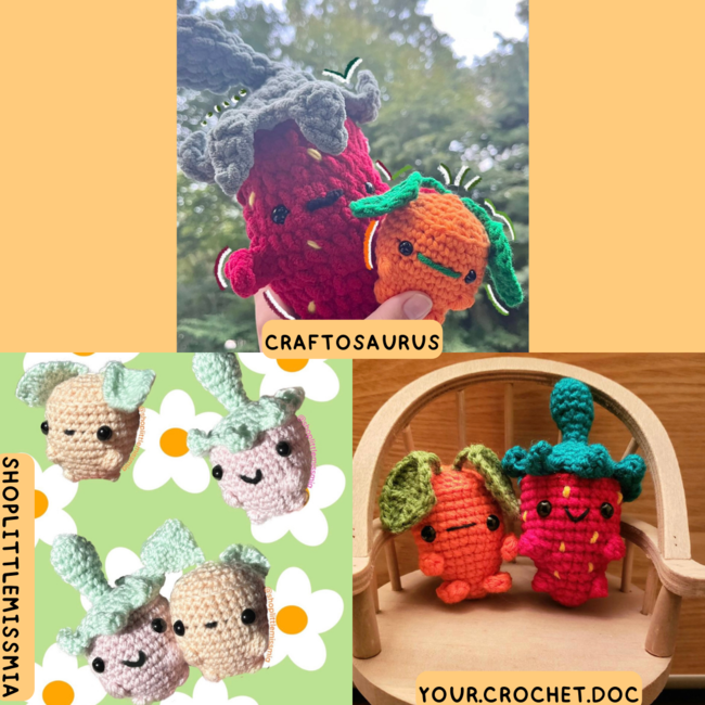 zellosprojects designed the 2 - In - 1 Chubby Carrot & Strawberry pattern. Find more of their patterns on their Ribblr shop page.