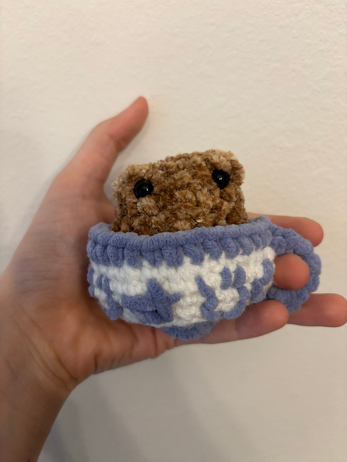 Crochet Sillies designed the 2 in 1 - Tea & Wizard Frog pattern. Find more of their patterns on their Ribblr shop page.