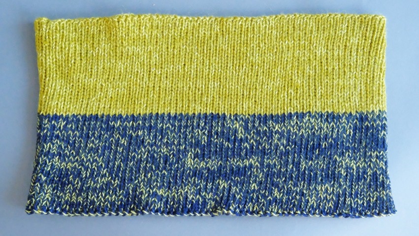 To make 2020 Cowl you will need: ©Knit One Crochet too YarnSebago (50 gr/ 146-yds ) 100% Superwash Merino Wool - Color A: #524 Avocado x 1 skein, ©Knit One Crochet too YarnSebago (50 gr/ 146-yds ) 100% Superwash Merino Wool - Color C: #695 Navy x 1 skeins, ©Knit One Crochet too YarnWinter Blossom (50 gr/246-yds)50% Organic Extra Fine Merino, 30% Mohair, 20% Silk - Color B: #313 Snapdragon x 2 skeins, Tapestry needle for weaving in ends, Stitch marker. Tools required: US 6 (4 mm) 24@Q/40 cm circular needle.