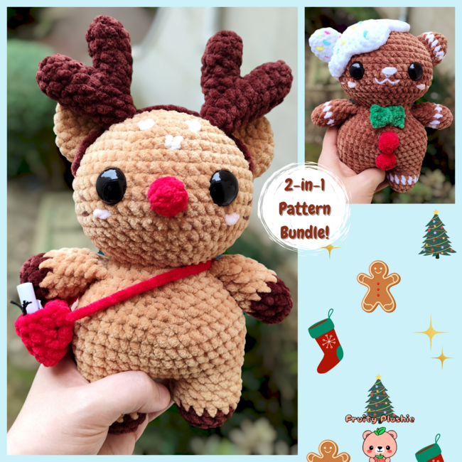 Get ready for Christmas with this Gingerbread and Reindeer Cat crochet pattern bundle! This special set includes two digital crochet patterns: