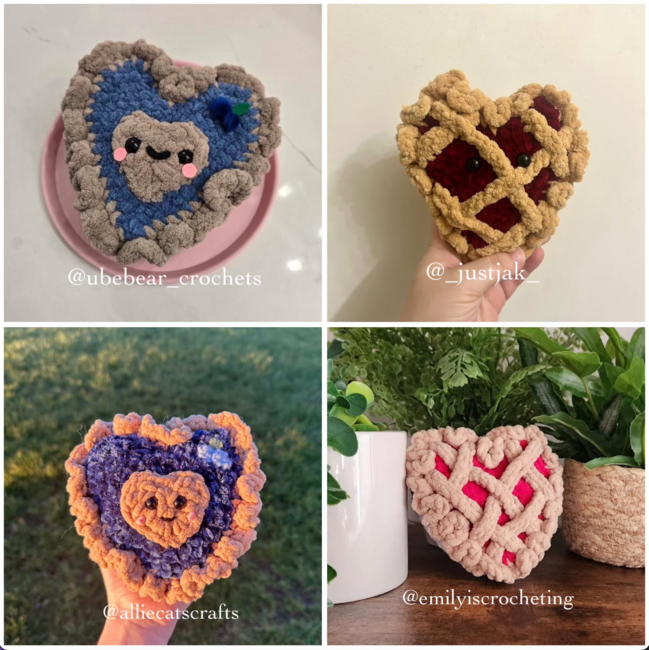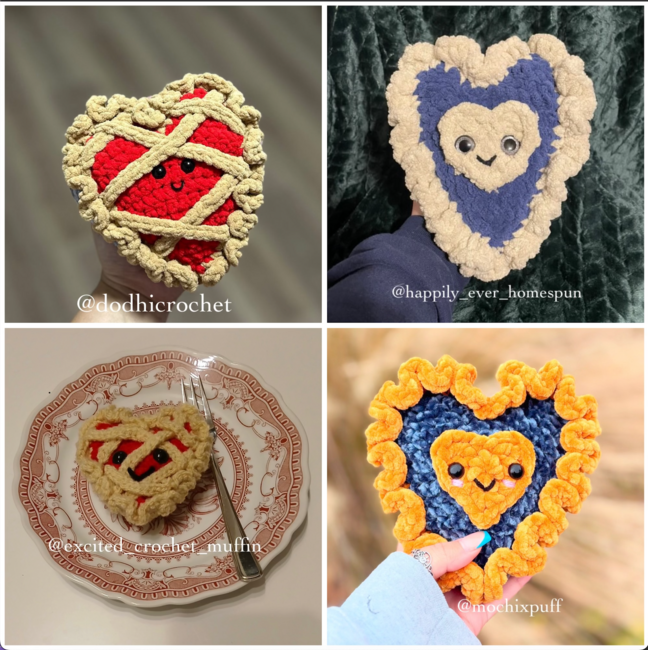 Another heart shaped dessert has arrived! With this pattern, you can make any pie "flavor" you want and you have two different pie crusts to choose from! This is an adorable plushie to add to a play kitchen or to sell at markets!