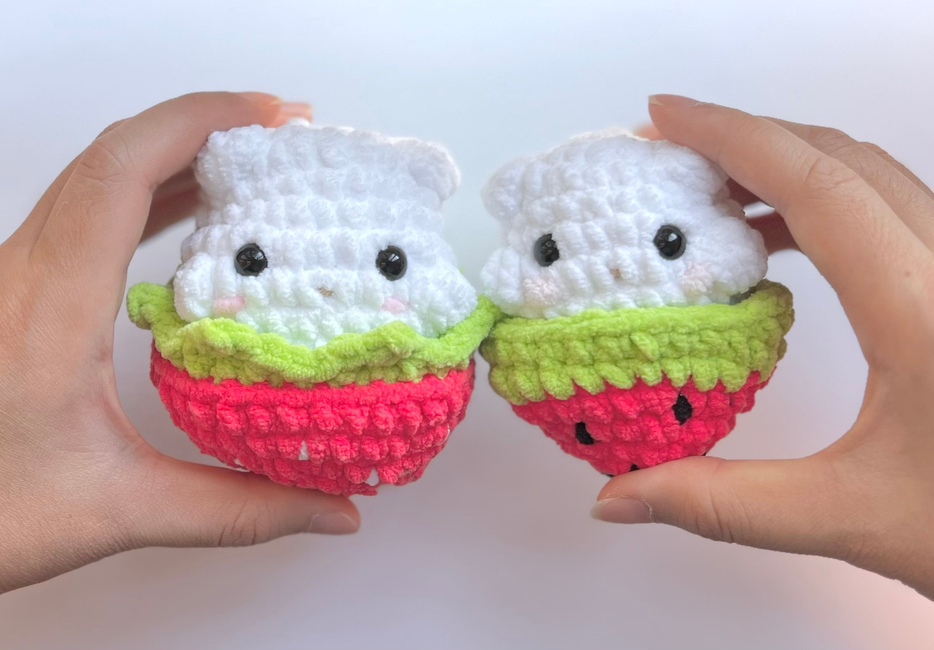 This is a 2-in-1 pattern bundle for making a strawberry and watermelon hamster!