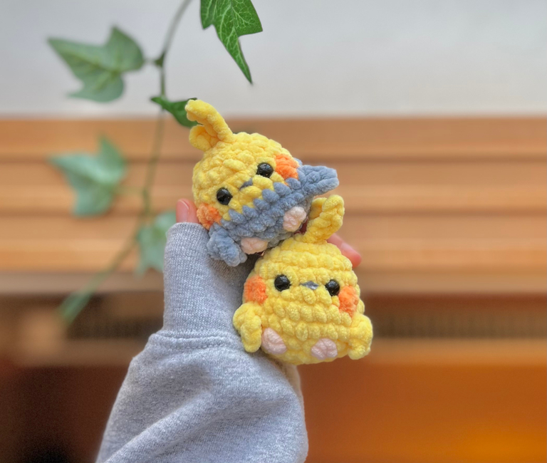 This is a 2-in-1 no-sew crochet pattern for making a baby cockatiel!