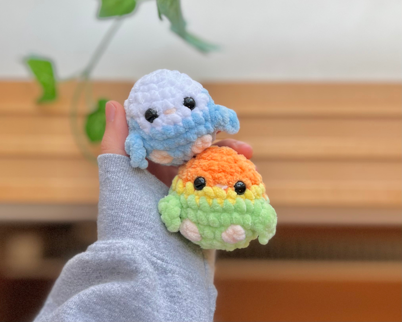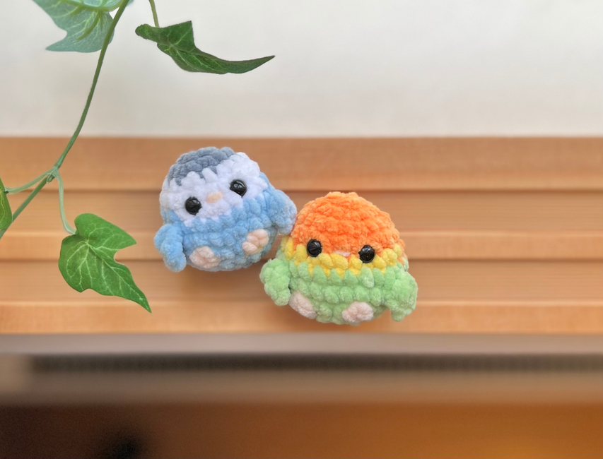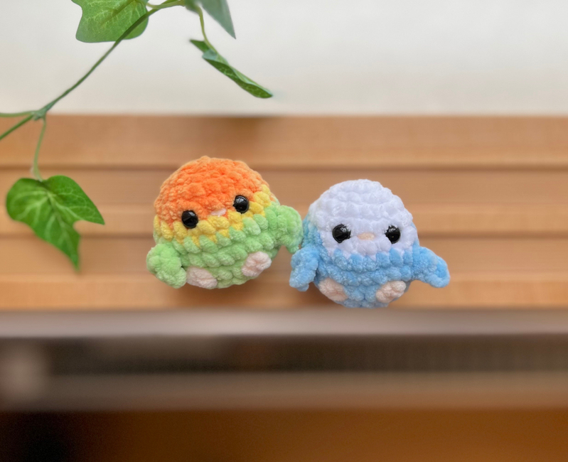 This is a 2-in-1 no-sew crochet pattern for making two baby lovebirds!