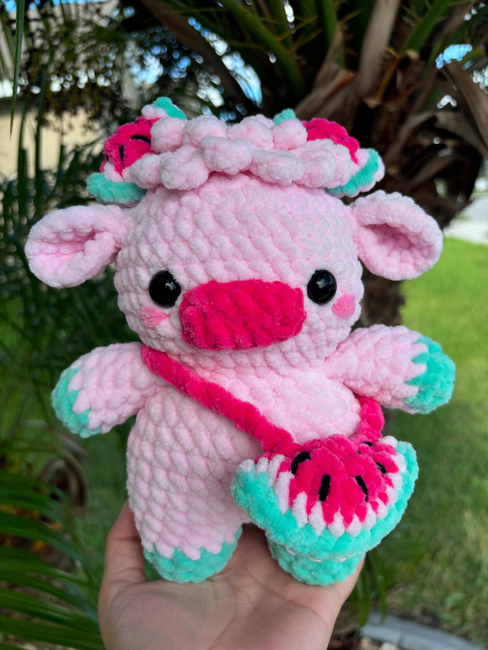 This is a Pattern to make your very own watermelon cow! With this pattern, you will get to learn how to make a watermelon cow, watermelon highland cow, overalls, and watermelon bag! This pattern is very customizable, as you can mix and match accessories, highland cow hair, colors, etc! :)