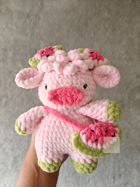 This pattern includes many step-by-step photos to guide you along the process of making your own watermelon cow plushie.