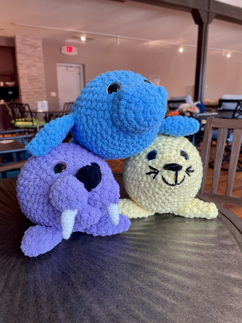 Worsted Weight - any color Worsted Weight - Black - used for embroidery seal nose & mouth Worsted Weight - white - used for walrus tusk Same Weight as your Walrus - black - used for walrus nose