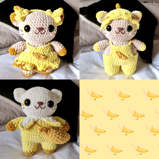 Get ready for a cuteness overload with this Banana Cat crochet pattern bundle! This special set includes three digital crochet patterns: