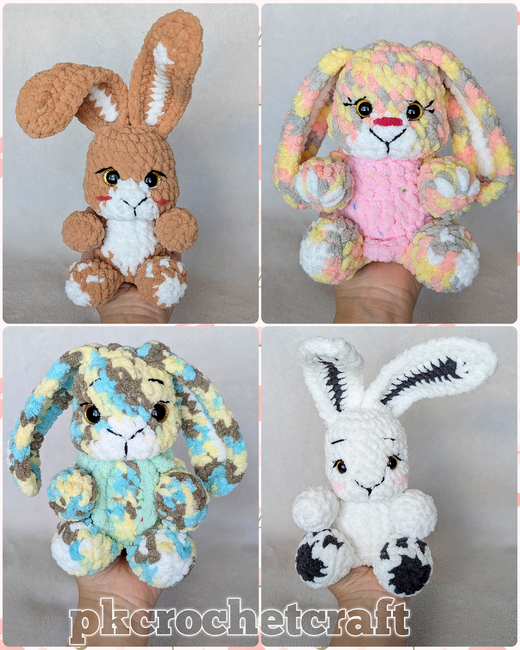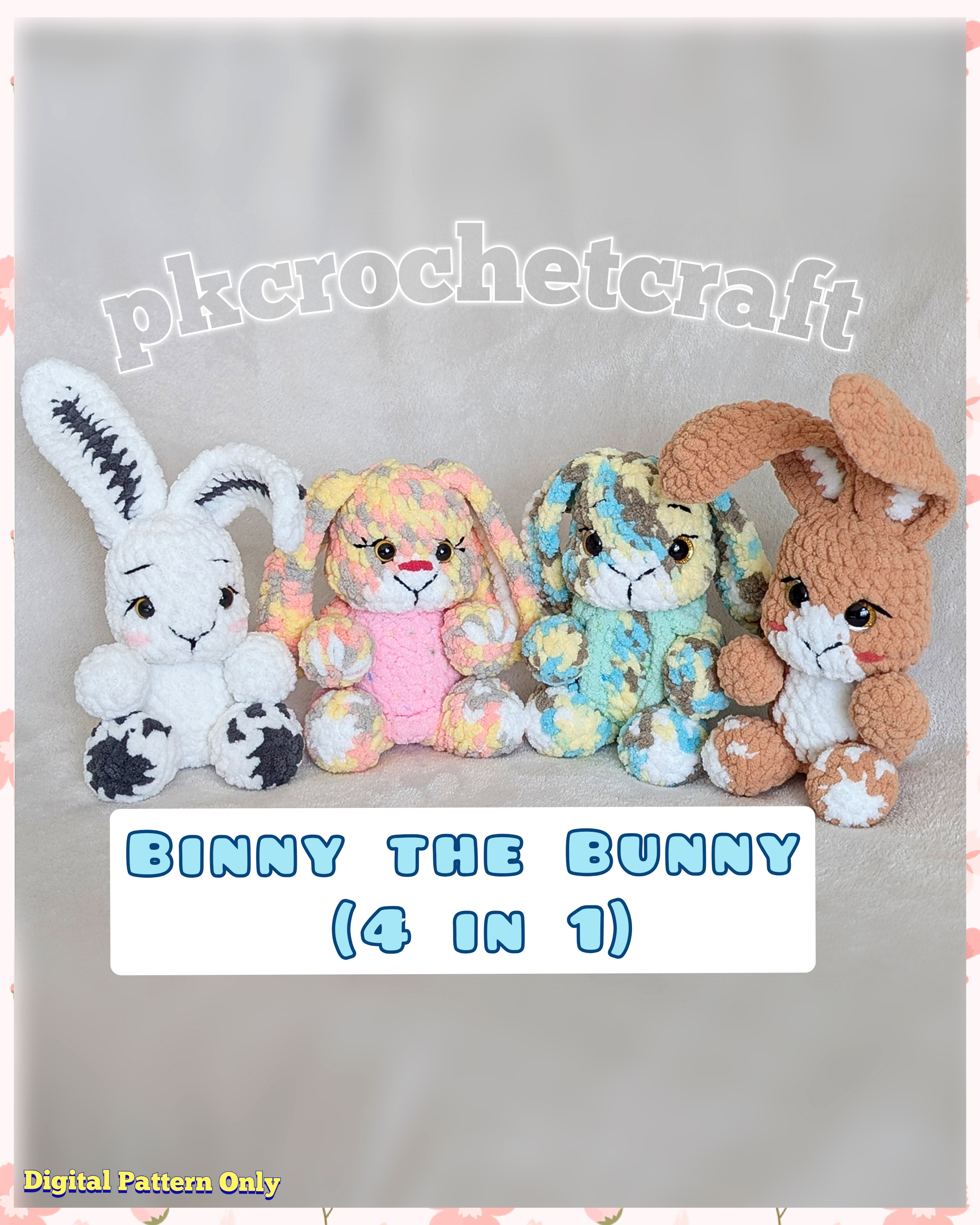 pkcrochetcraft designed the 4 in 1 Binny the Bunny crochet pattern pattern. Find more of their patterns on their Ribblr shop page.