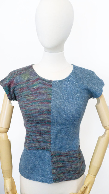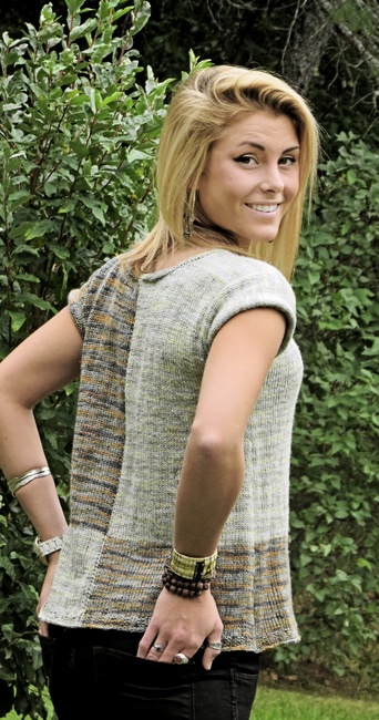To make 4 Square Tee 2310 you will need: Knit One, Crochet Too® yarnHANDPAINTED BATISTE . 50-gr/208-yd 50% merino wool/30% linen/20% silk - 2 (3, 3, 3, 3, 4) hanks #6911 stone (A), Knit One, Crochet Too® yarnHANDPAINTED BATISTE . 50-gr/208-yd 50% merino wool/30% linen/20% silk - 2 (3, 3, 3, 3, 4) hanks #6173 dream (B). Tools required: US sizes, one pair each 4 and 5 (3.5 and 3.75 mm), and one 16@Q size 4 circular needle, or size to obtain gauge..