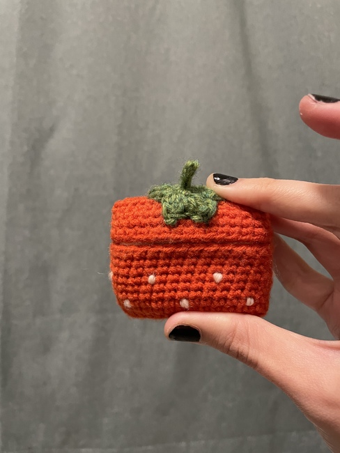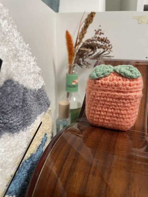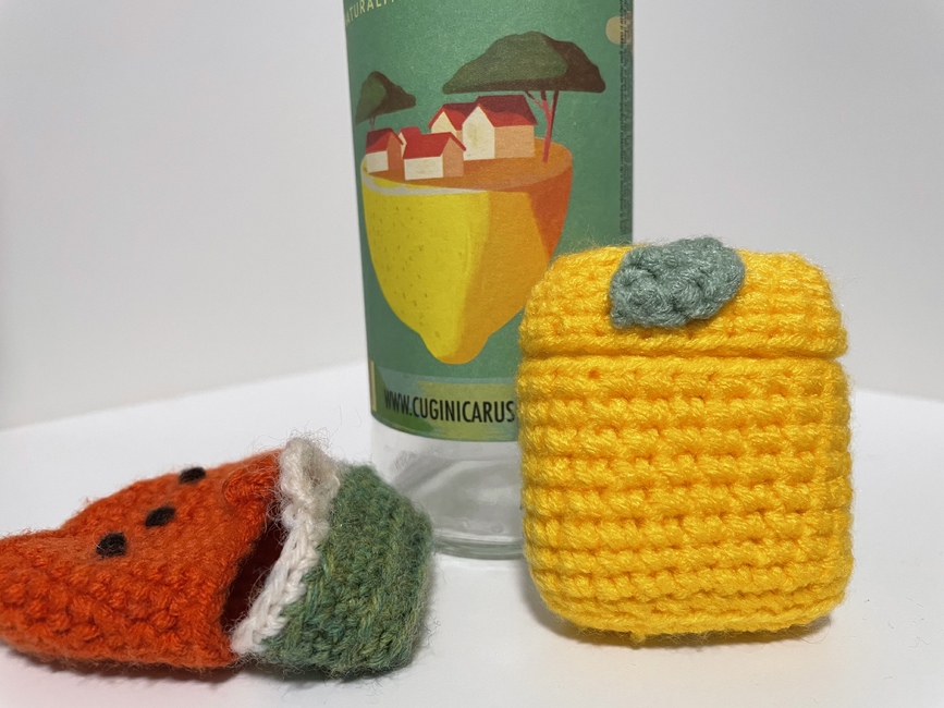 KiK (´・ω・`) designed the 4-in-1 fruit airpods cases (watermelon, lemon, peach, strawberry) pattern. Find more of their patterns on their Ribblr shop page.