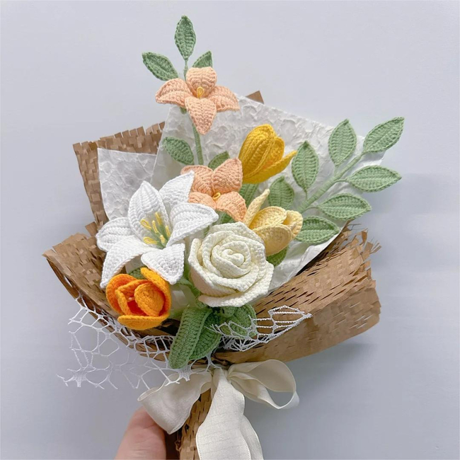 These flowers can be used to match bouquets and a great match for flower bouquets. you can also make more variety changing colors. They are perfect for home decoration, wedding bouquets, graduation flower bouquets, birthday gifts or any holiday's day gifts. Check out my profile for other bouquet or cute amigurumis patterns.