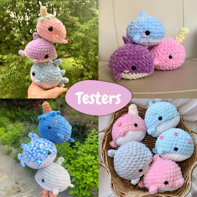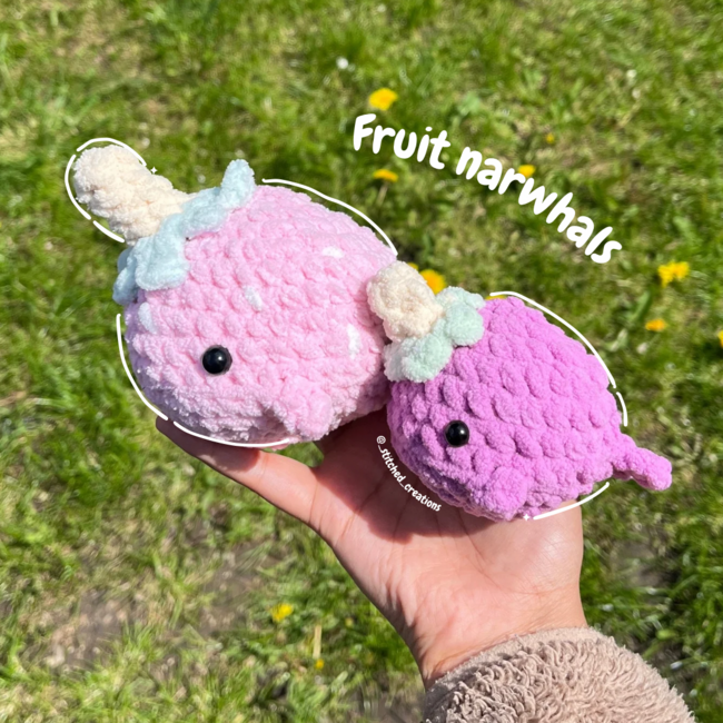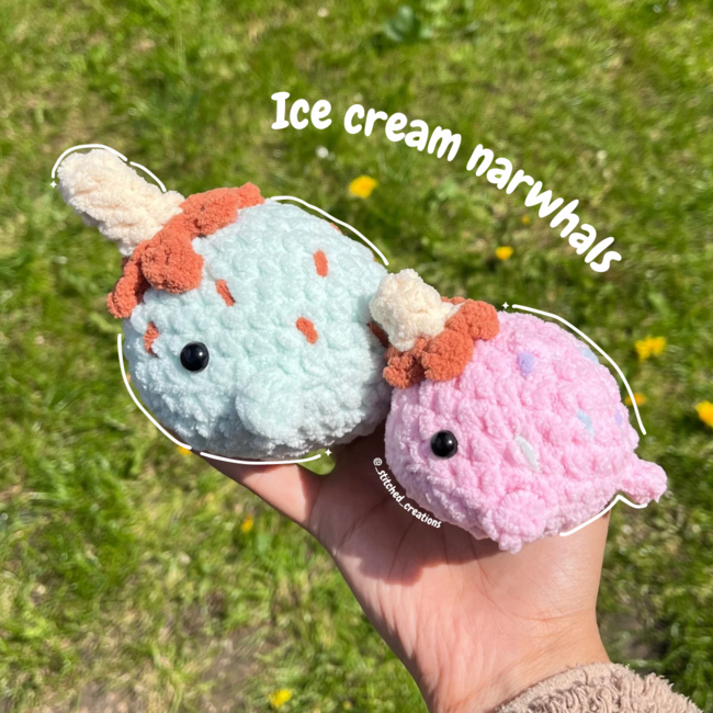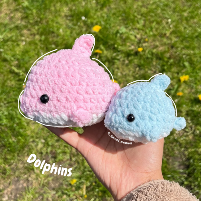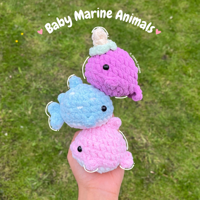 This pattern is 6 in 1 and includes how to make a whale shark, dolphin and narwhal along with their baby versions!! They work up pretty quick and are also no-sew, making them ideal for market preps or as a quick project. This pattern includes how to make the baby version AND the original version.