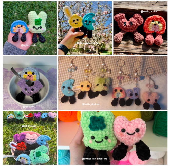 DISCLAIMER: please use yarn that is a 5 weight or above. The plushies will be way too small if you use a worsted weight.