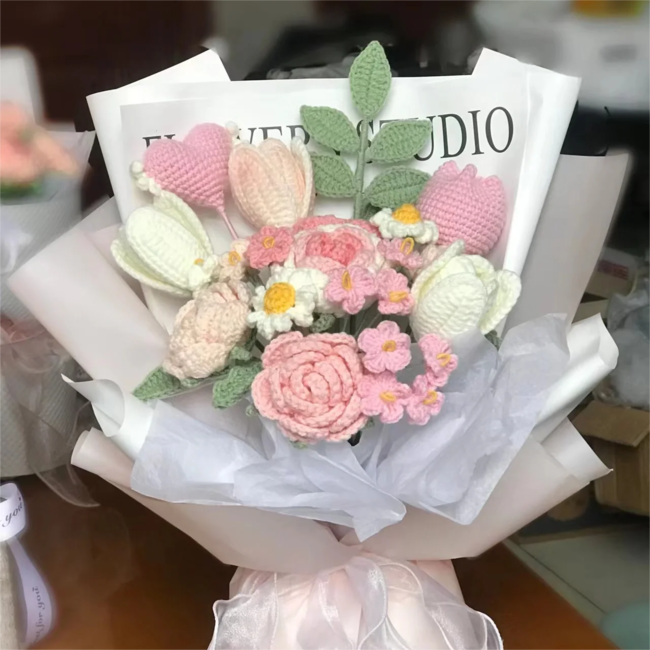 These flowers can be used to match bouquets and a great match for flower bouquets. you can also make more variety changing colors. They are perfect for home decoration, wedding bouquets, graduation flower bouquets, birthday gifts or any holiday's day gifts. Check out my profile for other bouquet or cute amigurumis patterns.