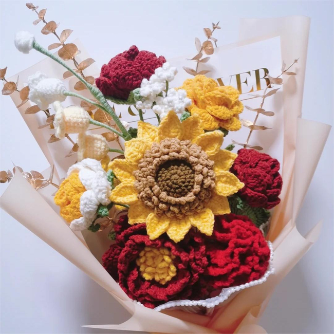 These flowers can be used to match bouquets and a great match for flower bouquets. you can also make more variety changing colors. They are perfect for home decoration, wedding bouquets, graduation flower bouquets, birthday gifts or any holiday's day gifts. Check out my profile for other bouquet or cute amigurumis patterns.