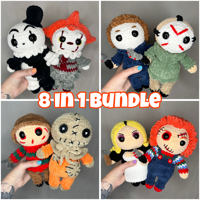 Creepy Clown, Slasher Clown, Hockey Mask Man, Halloween Slasher, Mr. Nightmare, Halloween Guardian, Evil Doll, and Evil Bride.