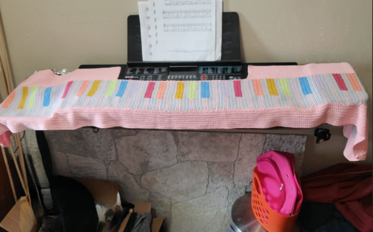 This pattern is for the piano keys. Add a round or two of sc and it can be a scarf. I put 3 inches around it. Imagine it as a couch cover, or a blanket.