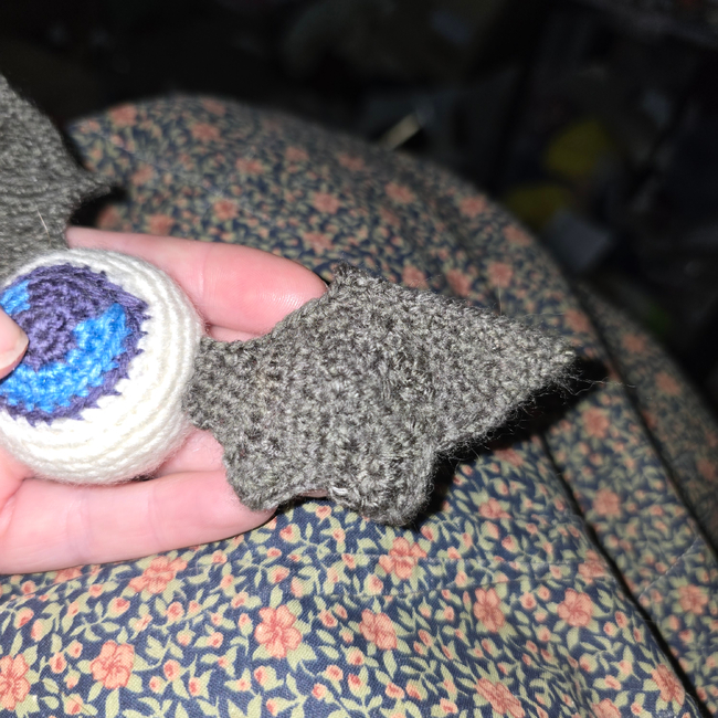 I decided to make a fun batty eyeball pattern all my own because I wanted to design some neat wings~