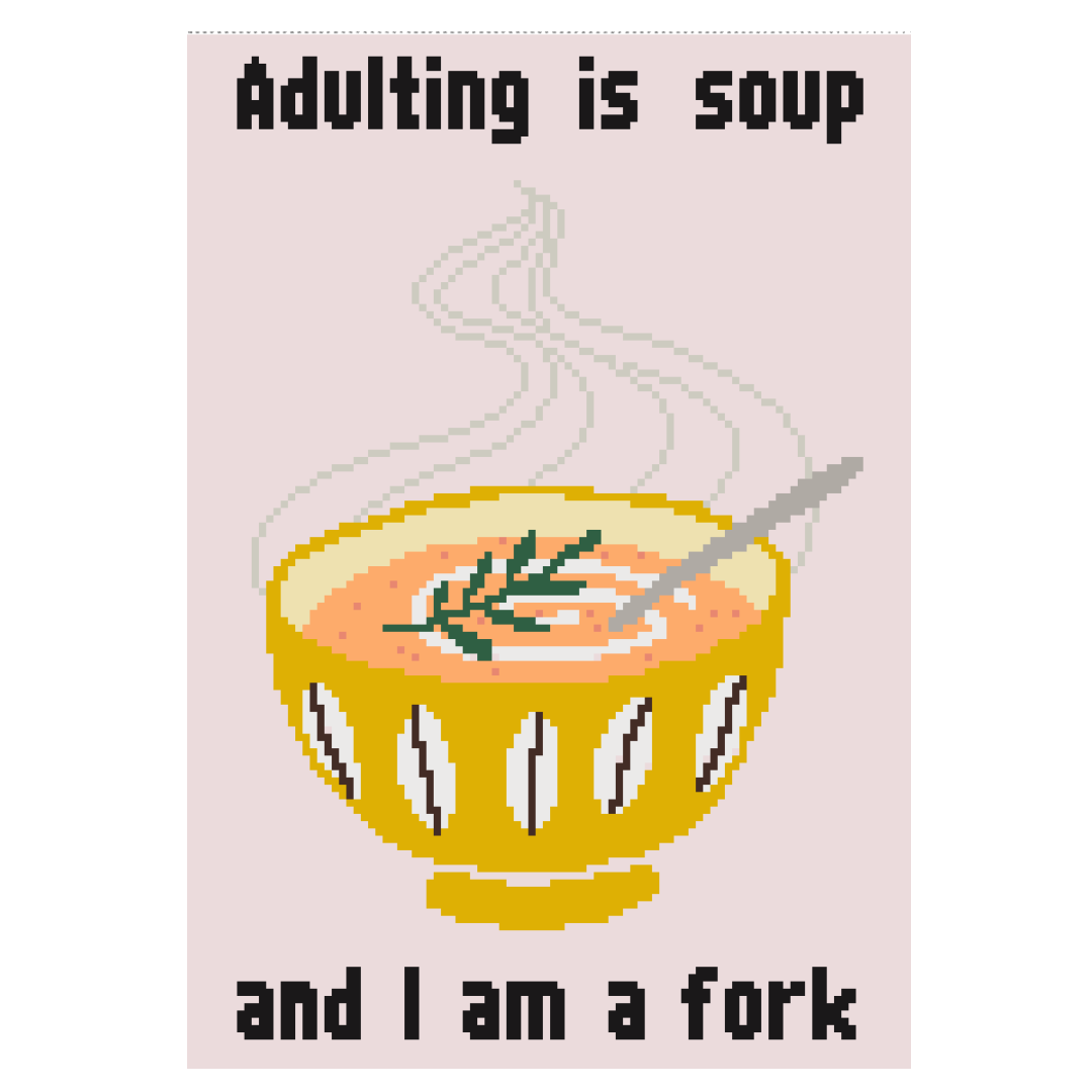 ”Adulting is soup” tapestry pattern