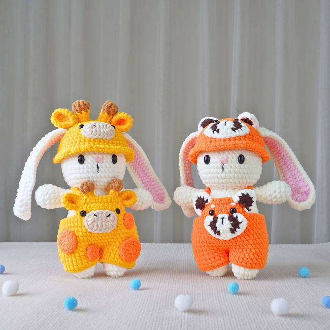 Get your bunny ready for adventure with the Adventurous Bunny Outfits! This crochet pattern set includes adorable outfits that transform your bunny into a charming Red Panda or a playful Giraffe. Each outfit is easy to make and adds a touch of whimsy and fun to your amigurumi collection. Perfect for those who love to mix and match, these outfits will bring endless creativity and joy to your crafting projects.