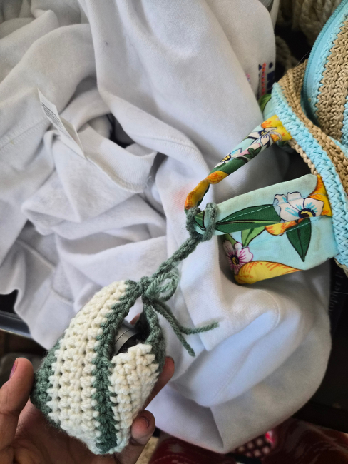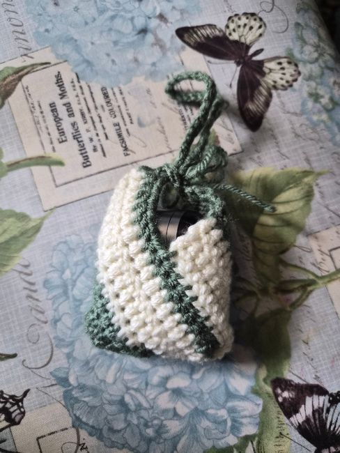 Crafty paws designed the air pod case!-free pattern. Find more of their patterns on their Ribblr shop page.