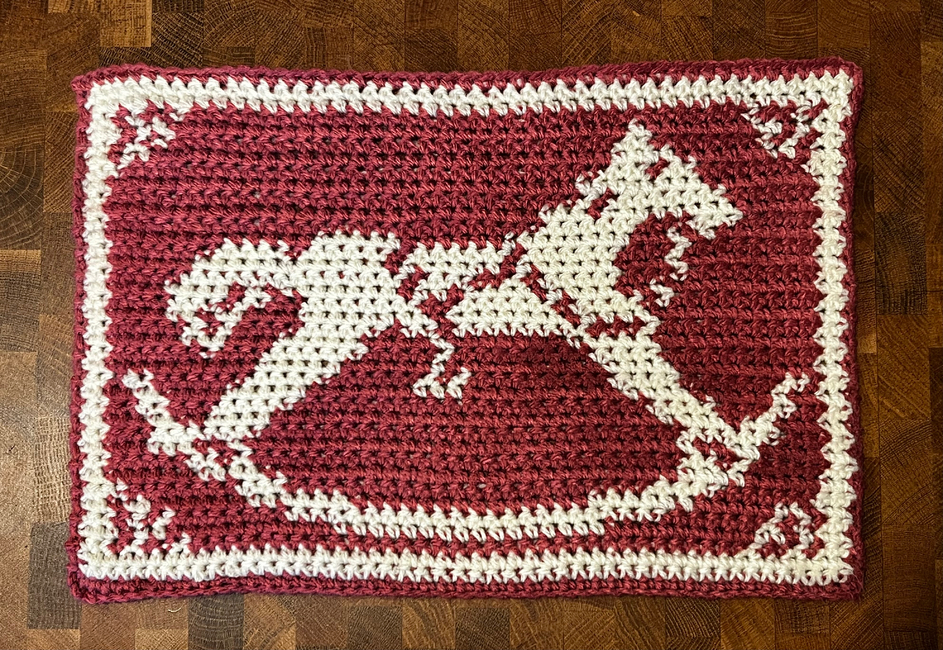 Since there will be rows with multiple changes between your two colours, I would HIGHLY recommend using the floating method for this and all tapestry pieces. CaitsCrochetCottage has a fantastic video explaining the method, which is linked in the pattern below.