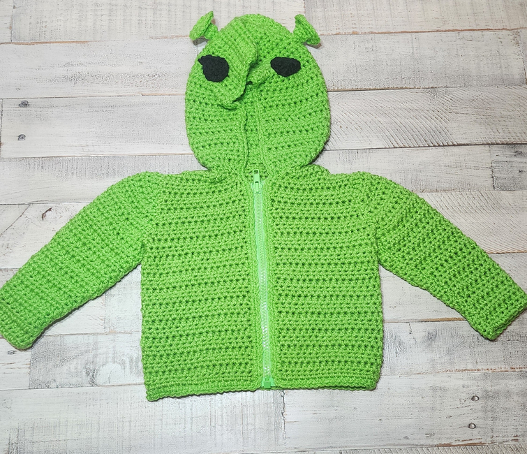 Whether you're preparing for a sci-fi themed baby shower or just want to dress your little one in something out of this world, this alien sweater is a fun and creative project for crochet lovers!