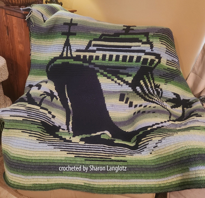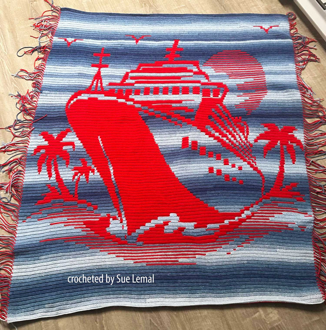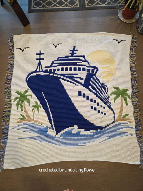 All Aboard Mosaic is an Intermediate Crochet pattern designed by The Crochet Couch for making a Home Decor. The All Aboard Cruise Ship Afghan brings bold nautical style to life with a dramatic cruise-ship silhouette, palm trees, birds, and a glowing ocean horizon. Perfect for cruise lovers and coastal décor, this standout blanket adds travel vibes and s...