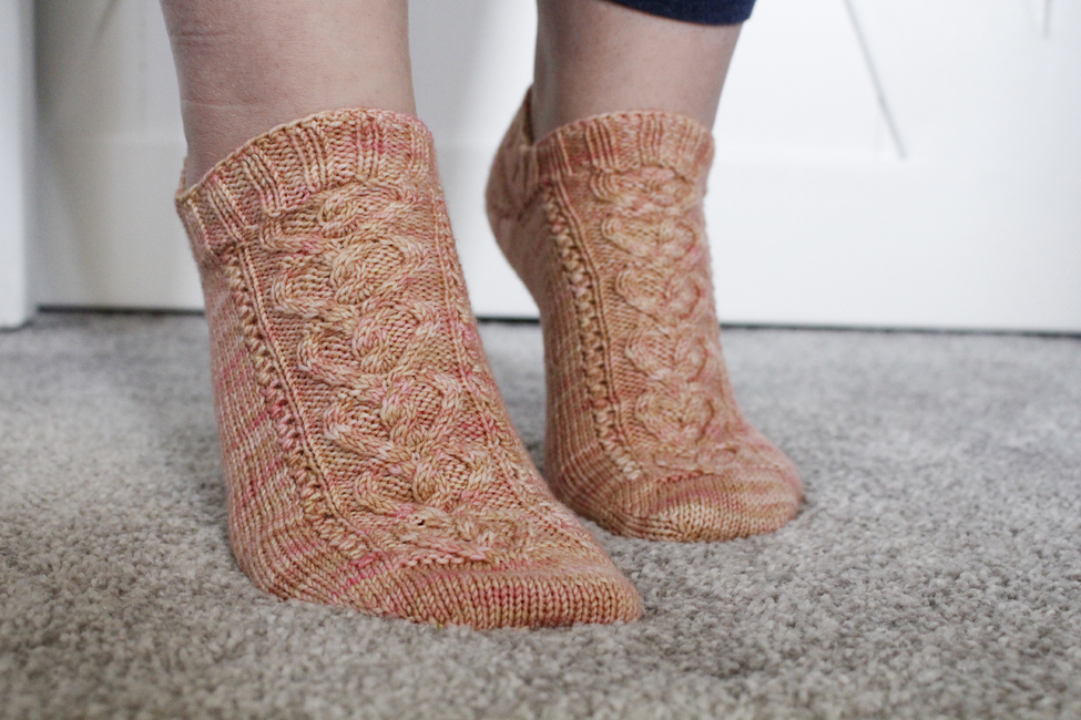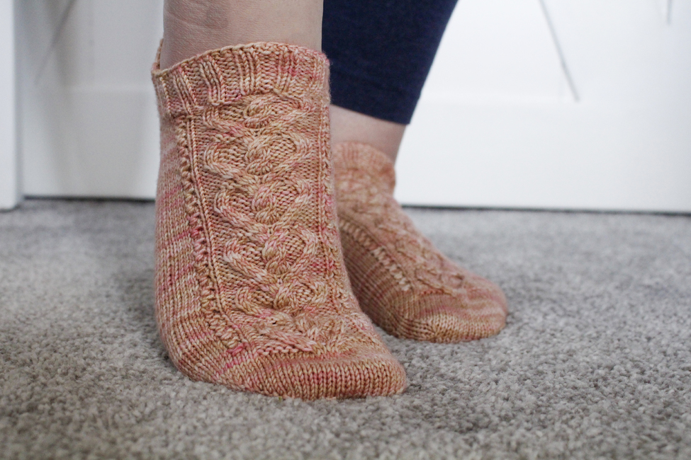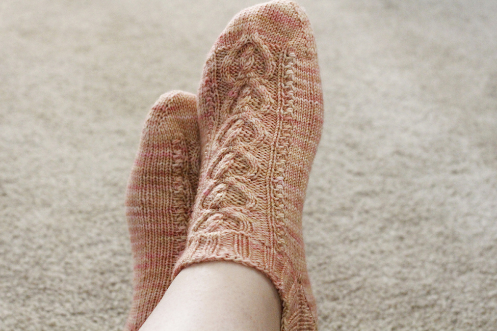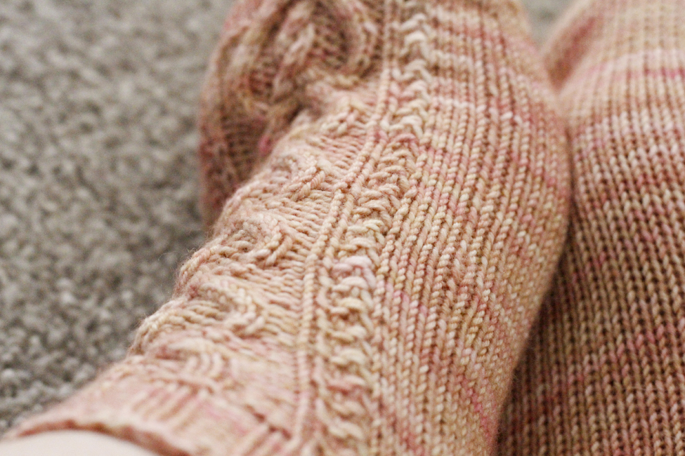 The pattern is written for the magic loop method for knitting socks; however, the design could be worked on double-pointed needles or mini-circulars instead should you prefer.