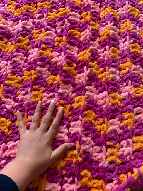 This is a blanket than is great for all seasons it only requires one stitch hope you enjoy making it.