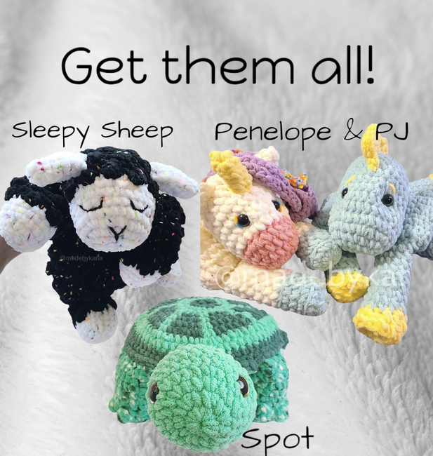Get all the Pajama Bag patterns for one low price! Use these cuties as bags to keep your children's pajamas during the day. They look cute and have a purpose. They are also perfect for gifting a blanket or layette. Awesome to pack pajamas for sleepovers too! You can make them into regular plushies or leave them with an unstuffed body for a perfect cuddle buddy. Lots of options with these patterns.