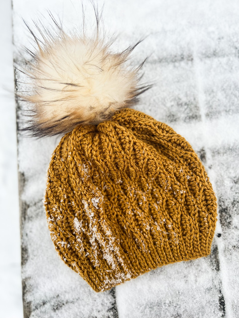 spottedhorsedesignco designed the ALMOND RIDGE BEANIE pattern. Find more of their patterns on their Ribblr shop page.