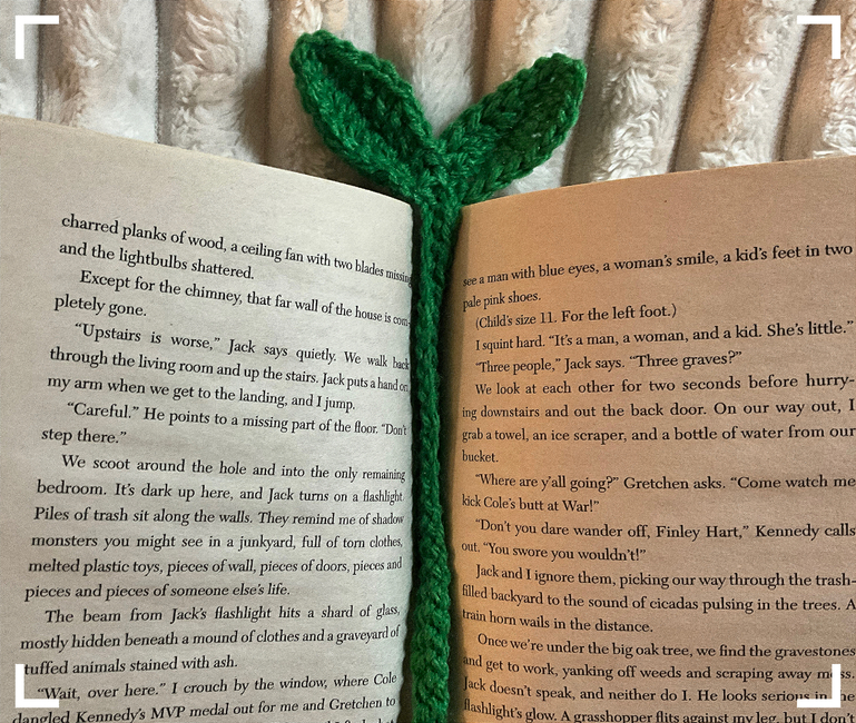 SpruceCrochet designed the Almost No Sew Leaf Sprout (Cord organizer, Bookmark, etc.) pattern. Find more of their patterns on their Ribblr shop page.