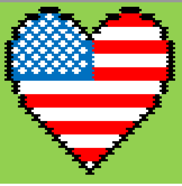 American Flag Heart design Continuous Square Graphgan 40 Row Graph