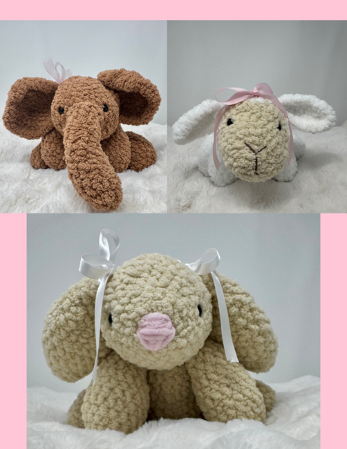 This Bundle Includes Instructions for the Smudge Elephant, Lamb, and Bunny Jellycat patterns designed by @amibyaddi, inspired by the smudge jellycats. They can move their limbs a lot, so they are highly adjustable in their positions. It takes a few hours to complete. Please do not copy, sell, redistribute, change, or claim this pattern as your own.