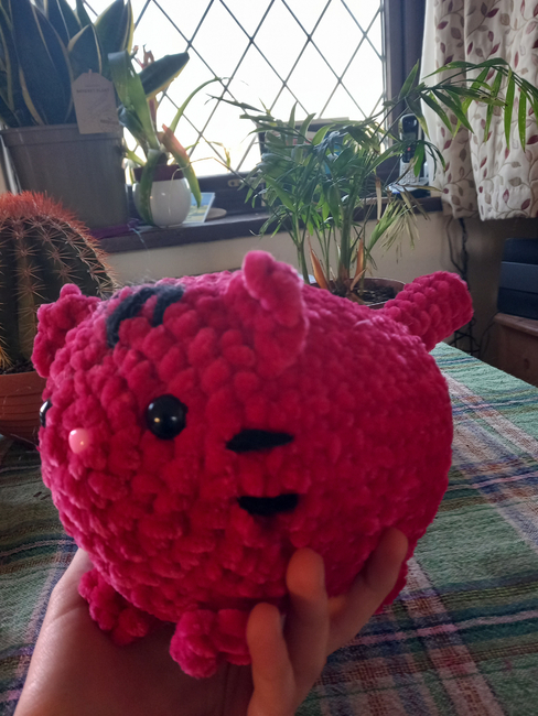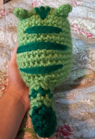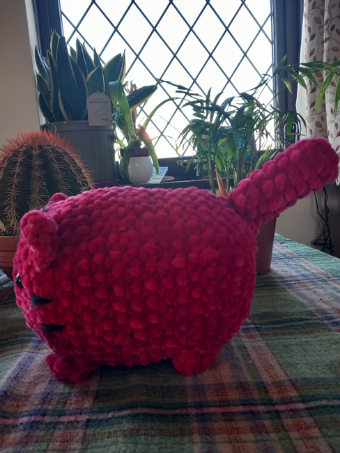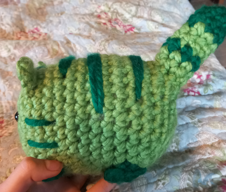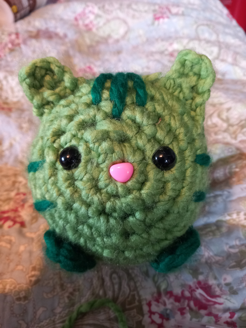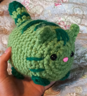 *Disclaimer: Pink cat in images looks slightly skewed, this is due to understuffing and lack of stitch markers. The pattern isn't the cause, but lack of resources is. If you would rather the cat be plumper and look more like the green cats, please use stitch markers and stuff adequately.