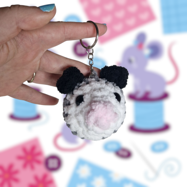 This crochet opossum keyring is a quick crochet project with just a few rows for the main section