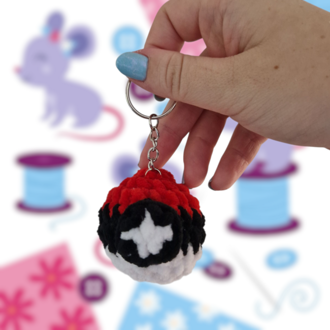 This crochet Pokeball keyring is a quick crochet project with just a single crochets, increases and decreases
