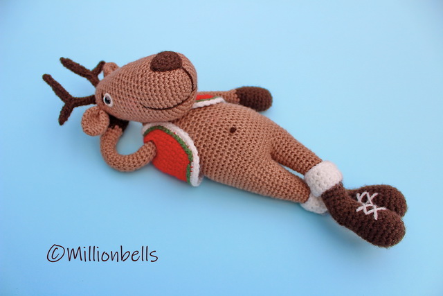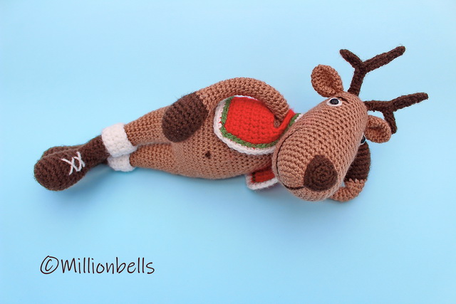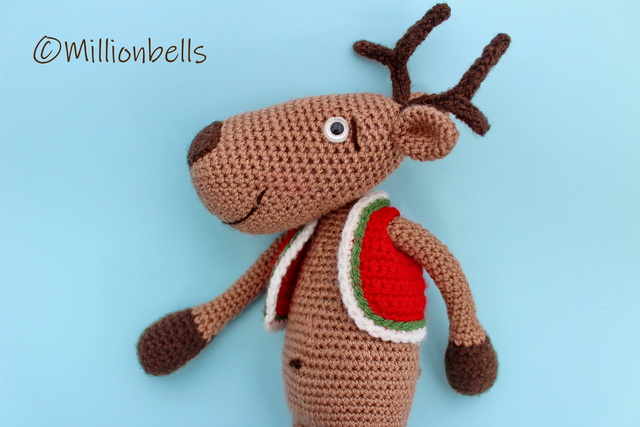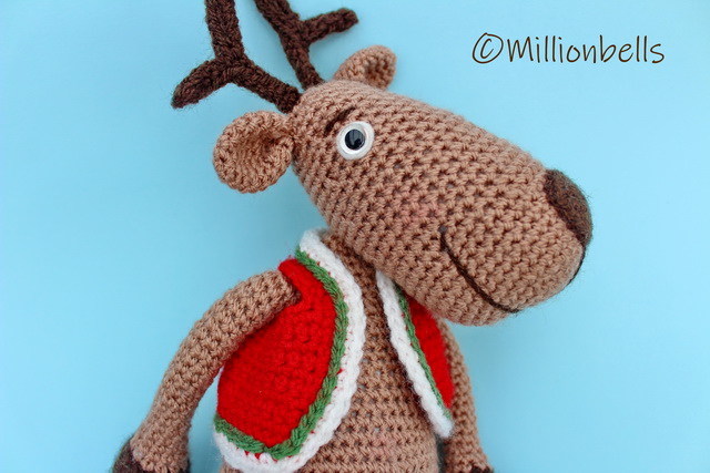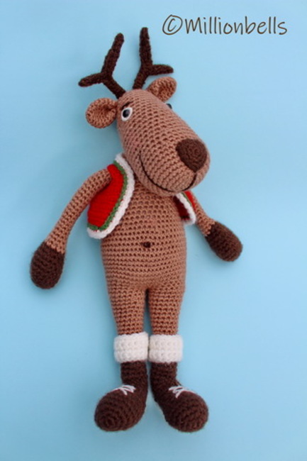 This pattern will guide you to crochet a reindeer as shown in pictures. Pattern includes instructions for the jacket as well.