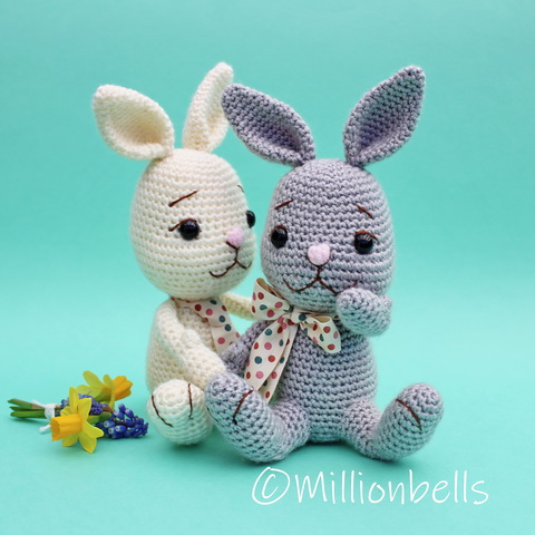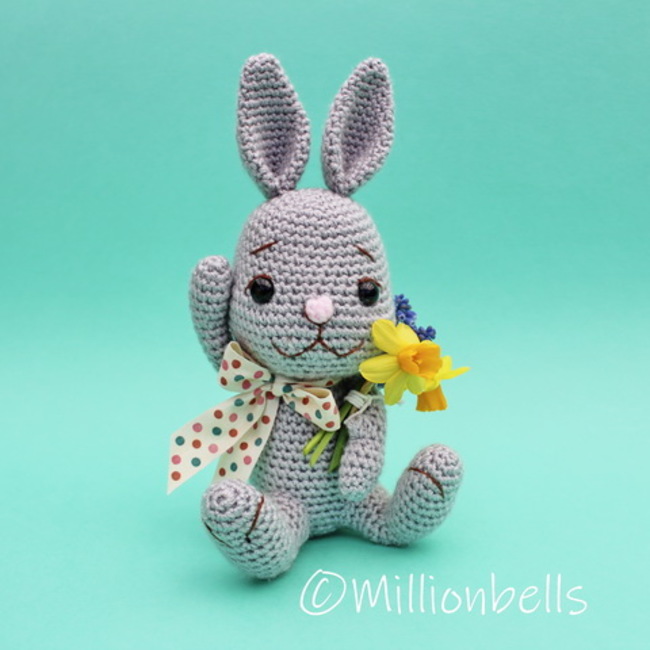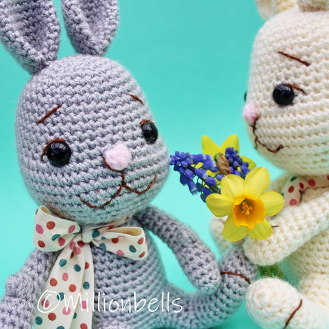 This crochet pattern will guide you to crochet an adorable amigurumi spring bunny as shown in pictures, made using soft acrylic 8 ply / DK yarn and crochet hook E (3,5 mm).