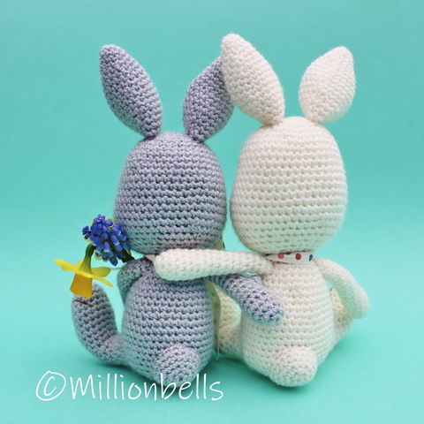 The bunny's head and body are crocheted together as 1 part. All parts are worked up in continuous rounds.