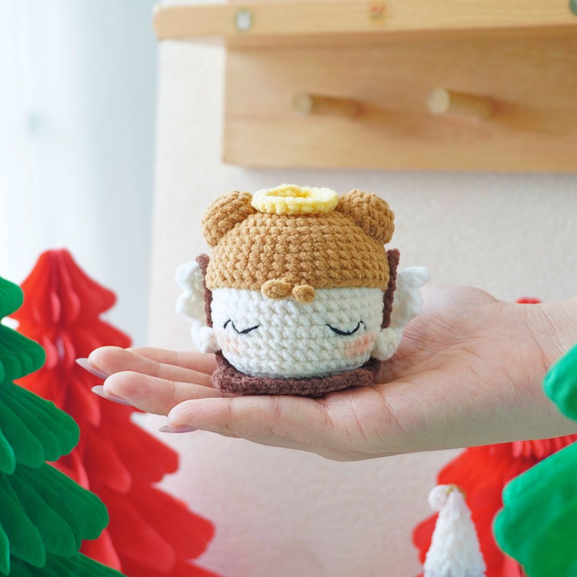 Color: White, dark brown, brown, skin yarn, a little yellow and black yarn
