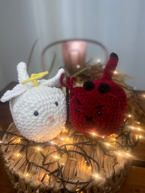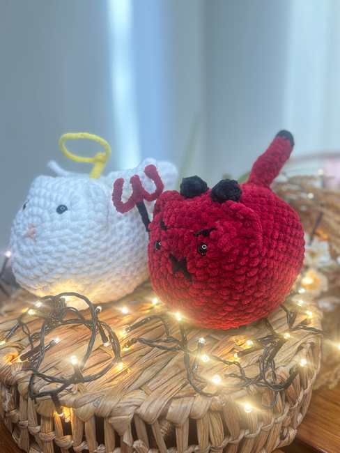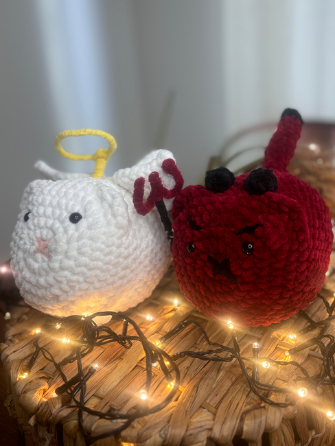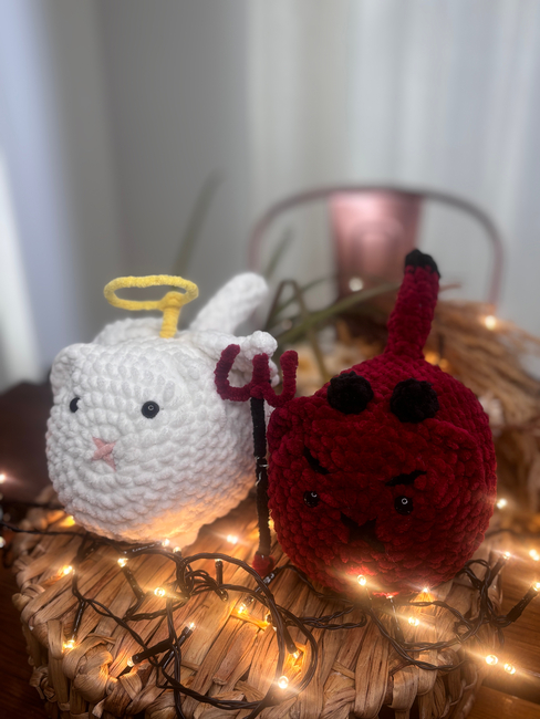 Get both the sweet and the mischievous with this Angel & Devil Loaf Cat Amigurumi Crochet Pattern Bundle! This set includes two low sew crochet patterns the adorable Angel Loaf Cat with halo and wings, and the cheeky Devil Loaf Cat with horns and a tail.