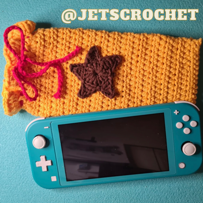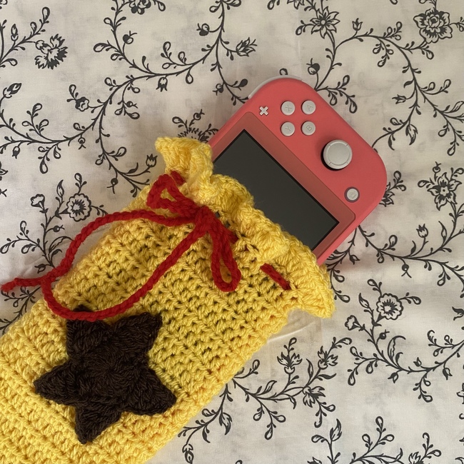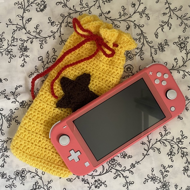 The Animal Crossing Bell Bag Switch Case pattern is free on Ribblr.