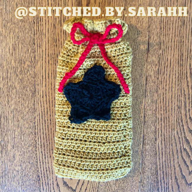 The Animal Crossing Bell Bag Switch Case pattern makes a Home Decor. It is a Beginner Crochet pattern.